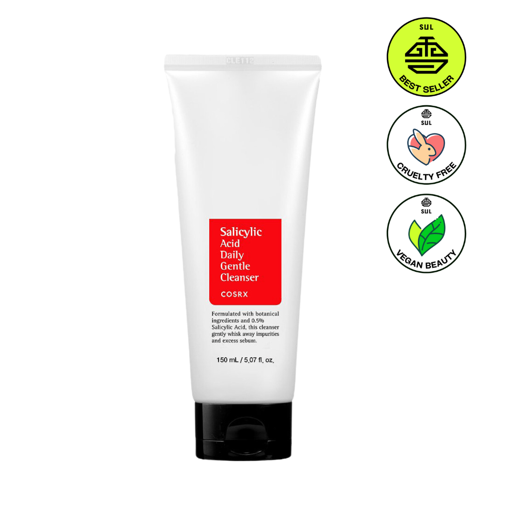 The Salicylic Acid Daily Gentle Cleanser by COSRX is a non drying daily cleanser containing salicylic that helps to polish the skin. This cleanser gently removes impurities and excess sebum while fighting acne and blemishes, leaving skin feeling soft and clean without the stripping feeling.