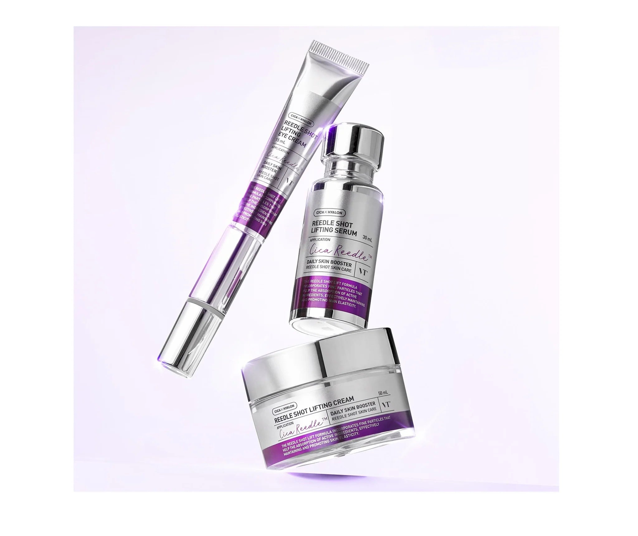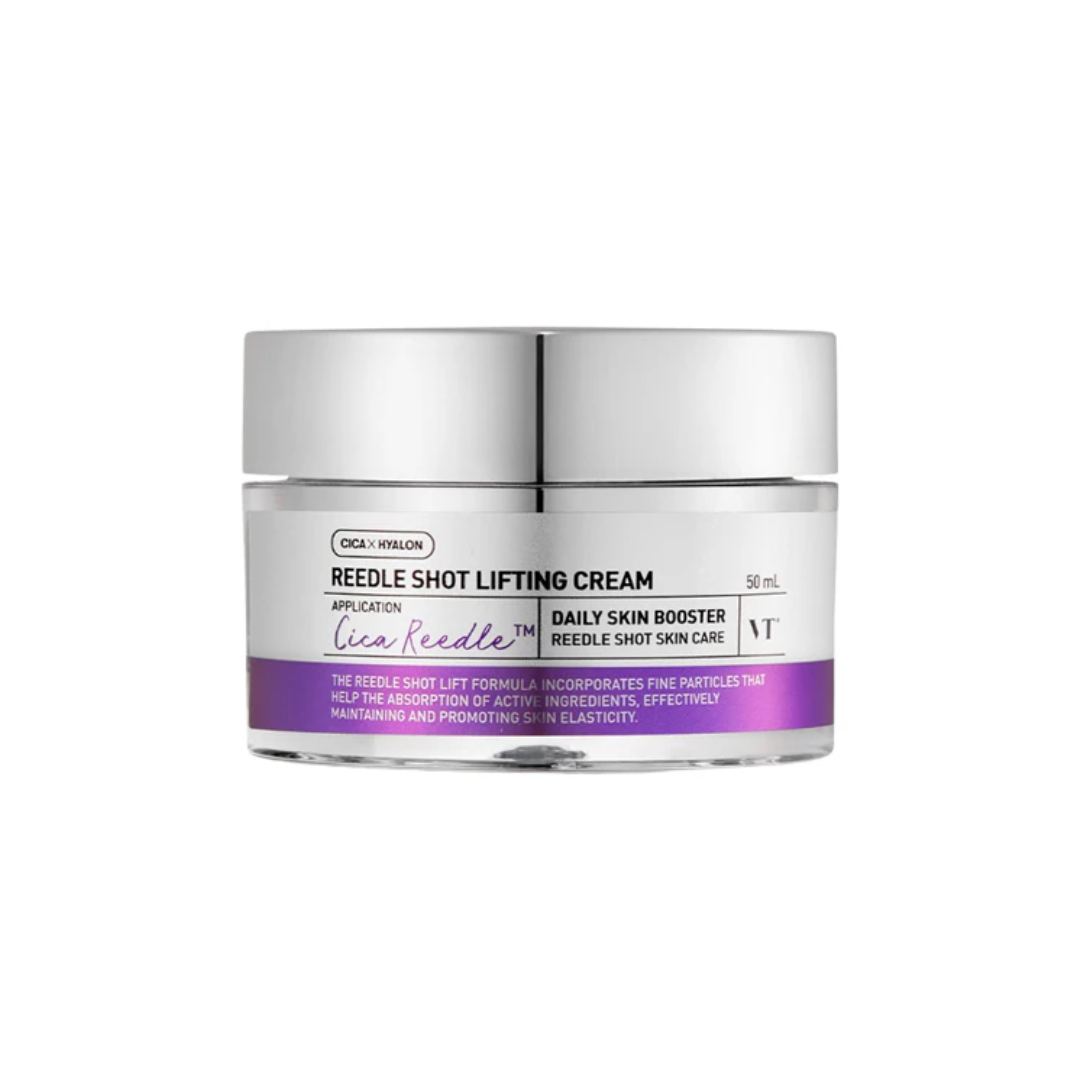 The Reedle Shot Lifting Cream by VT Cosmetics is an anti-aging cream designed to restore skin elasticity, minimizing fine lines and wrinkles for a firmer, youthful complexion. Formulated with Cica Reedle™ microneedles, it enhances absorption of active ingredients like Acetyl Hexapeptide-8 and Centella Asiatica to improve skin texture, hydrate, and revitalize aging skin. Its moisture-rich formula penetrates deeply, replenishing hydration and brightness while supporting skin barrier care.