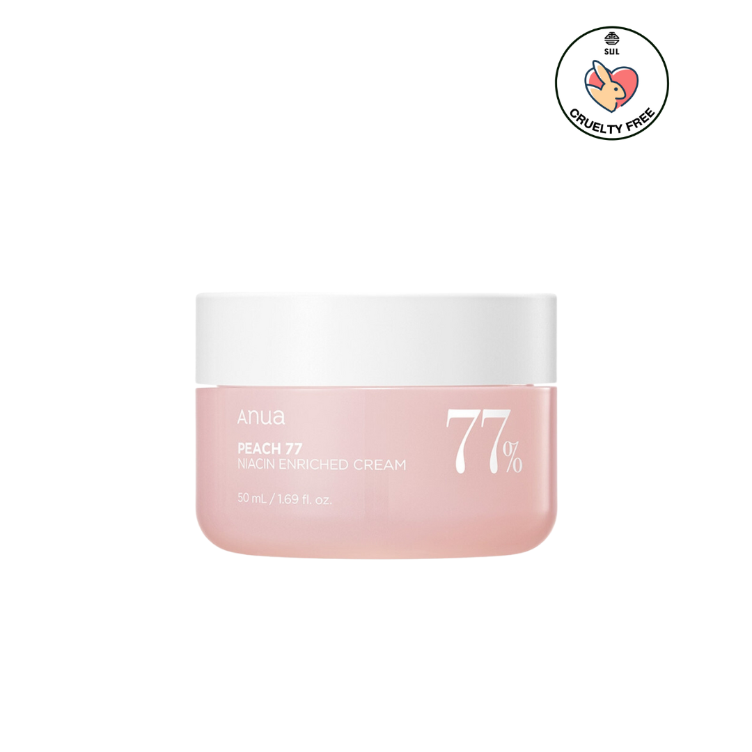 The Peach 77 Niacin Enriched Cream by Anua a luxuriously hydrating skincare solution, perfect for achieving a radiant, youthful complexion. It boasts a high concentration of 77% Peach Extract, which, along with Ceramide, Collagen, Panthenol, and Protein, deeply nourishes and moisturizes the skin. Ideal for all skin types, this cream enhances skin elasticity, reduces fine lines, and is quickly absorbed, leaving skin smooth, supple, and glowing with health.