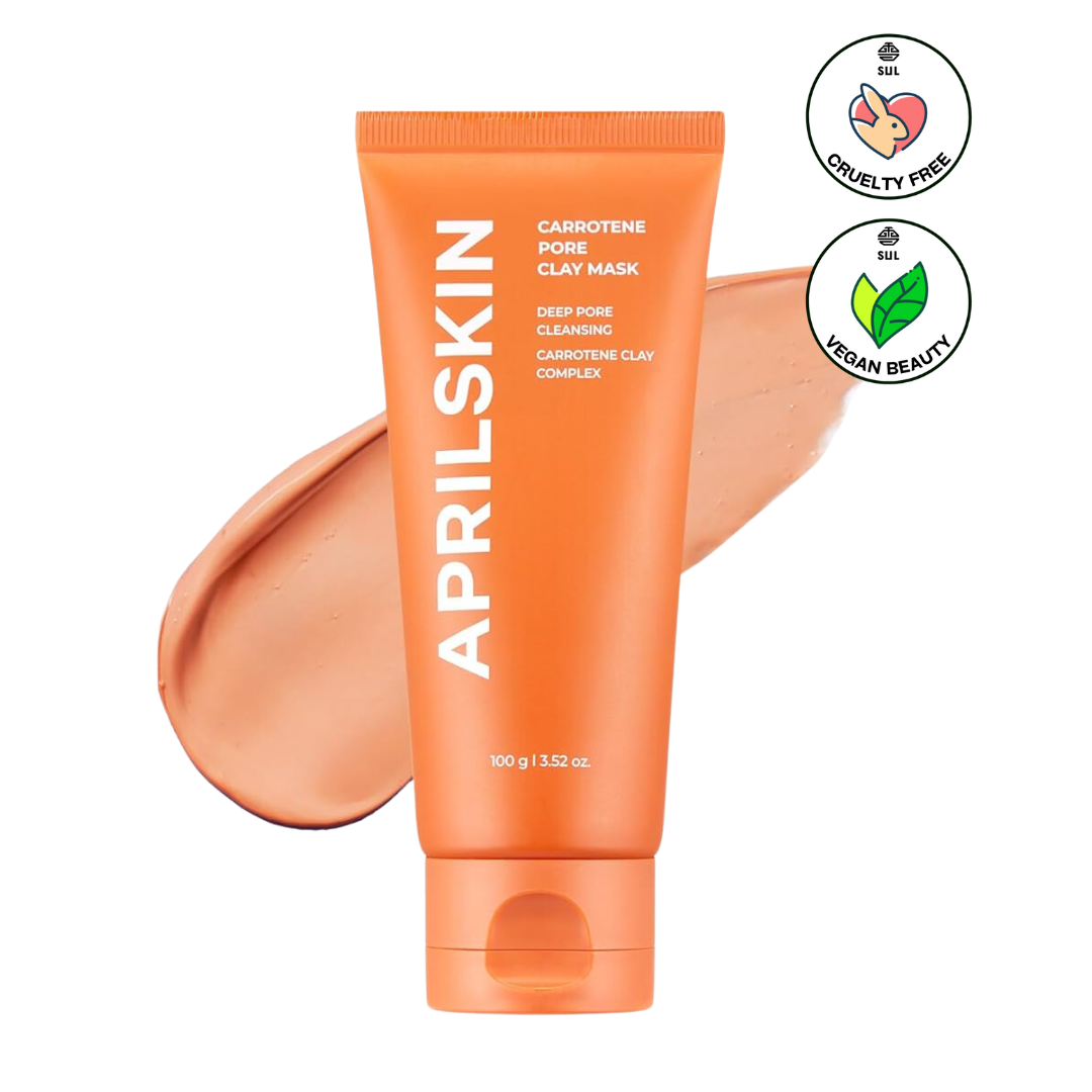 The Carrotene Pore Clay Mask by APRILSKIN deeply detoxifies and refines the skin with five types of clay, including kaolin and bentonite, to unclog pores, control excess sebum, and gently exfoliate dead skin cells.