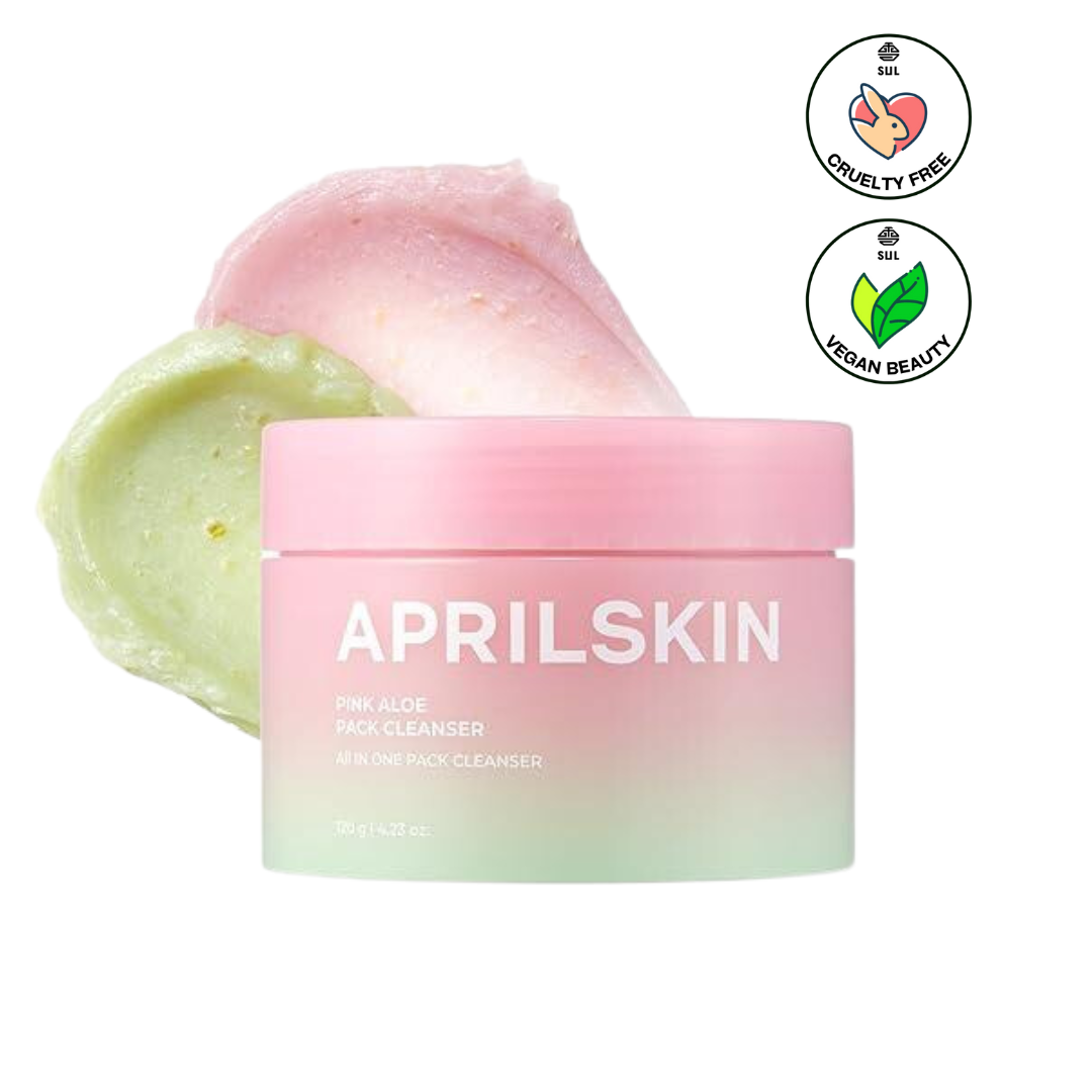 The Pink Aloe Pack Cleanser by APRILSKIN is a 4-in-1 cleansing foam that effectively removes makeup, exfoliates dead skin cells, and replenishes moisture while calming irritated skin.