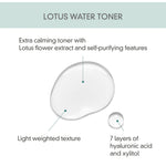 The Clean Lotus Water Calming Toner by Rovectin uses 40% Lotus flower extract and seven layers of hyaluronic acid to purify and deeply hydrate your skin.