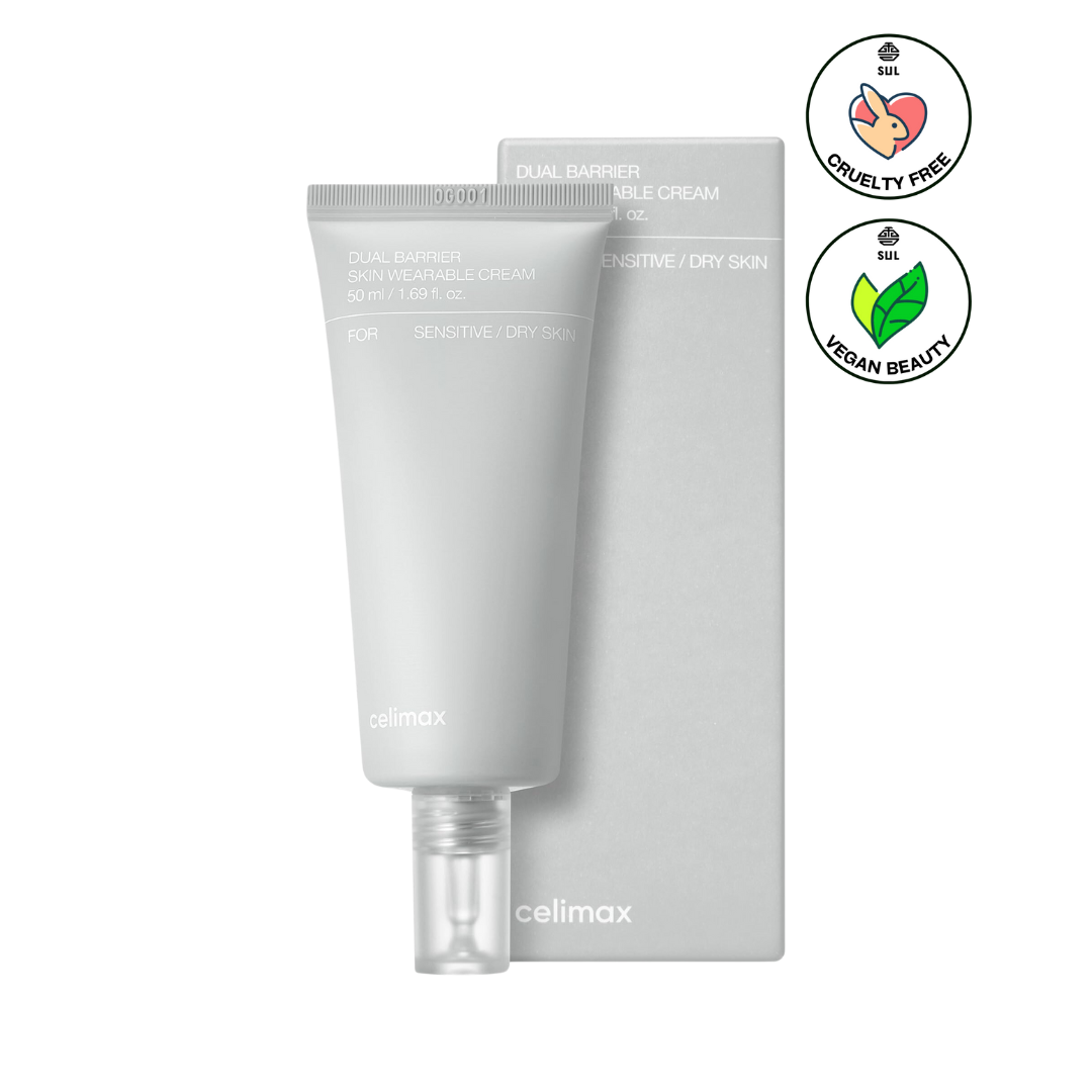 The Dual Barrier Skin Wearable Cream by Celimax is a vegan moisturizer that strengthens and replenishes the skin barrier, leaving your skin dewy, hydrated, and healthy-looking. Enriched with five natural ceramides and the patented Aquatide formula, it locks in moisture and protects against environmental stress. Its balm-like texture provides smooth, supple skin without any stickiness, making it ideal for dry, normal, and combination skin types.