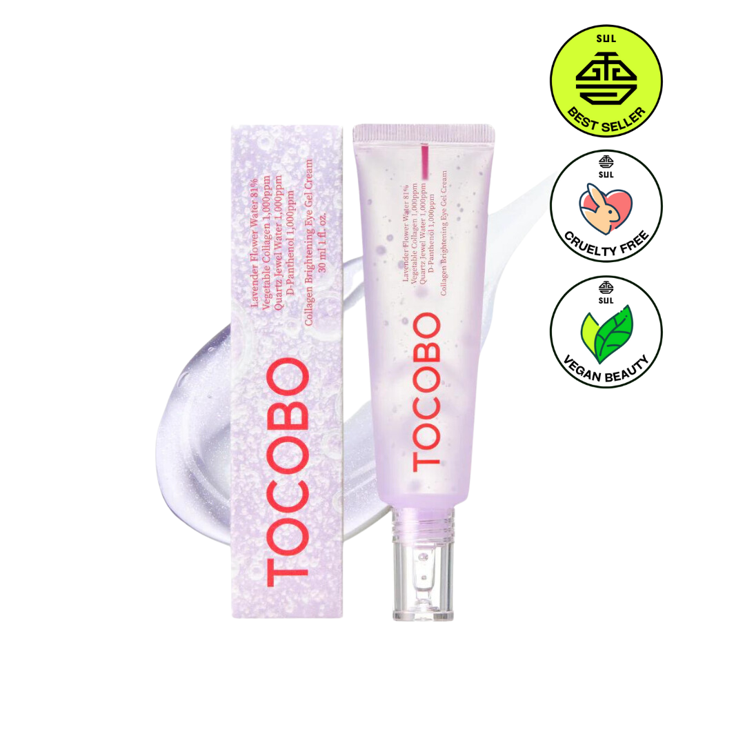 The Collagen Brightening Eye Gel Cream by Tocobo is enriched with potent collagen and illuminating agents such as lavender flower water and quartz water to revitalize the delicate eye area.