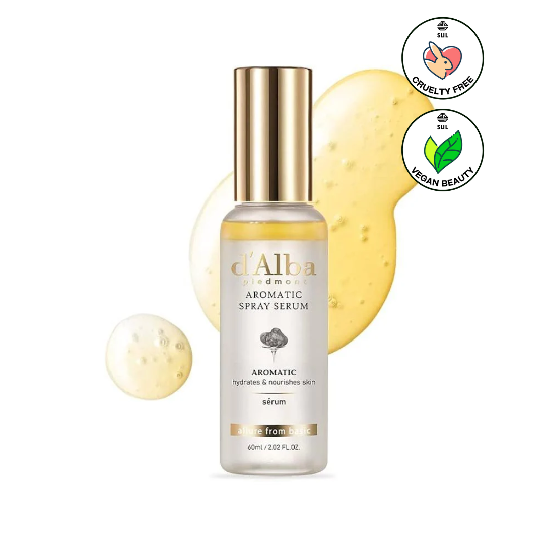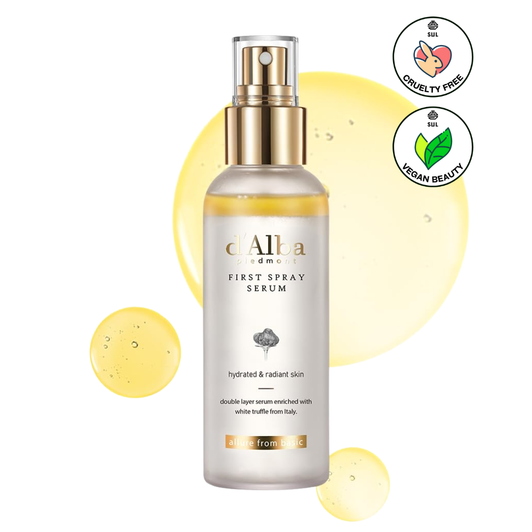 The White Truffle First Spray Serum by d'Alba is a luxurious mist infused with premium Italian White Truffle, Niacinamide, and Avocado Oil to deeply hydrate, brighten, and improve fine lines.