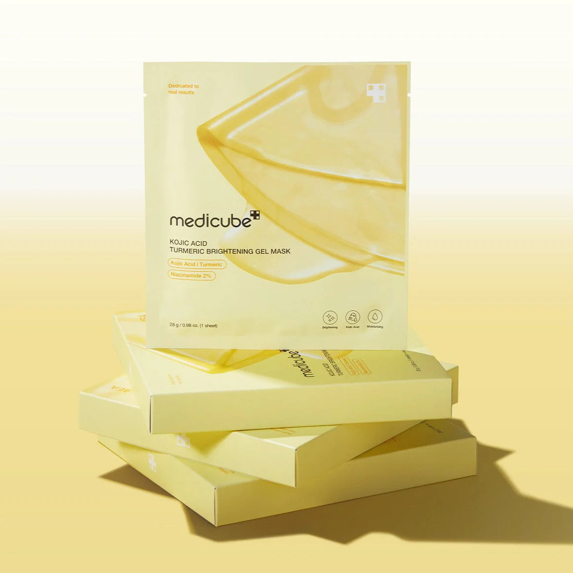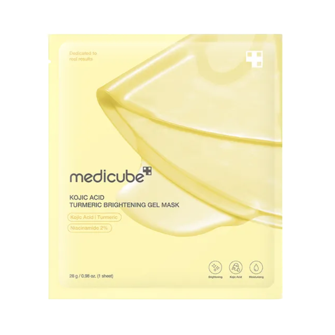 The Kojic Acid Turmeric Brightening Gel Mask by Medicube is infused with kojic acid, niacinamide, and turmeric root extract to brighten skin, reduce hyperpigmentation, and even out skin tone.