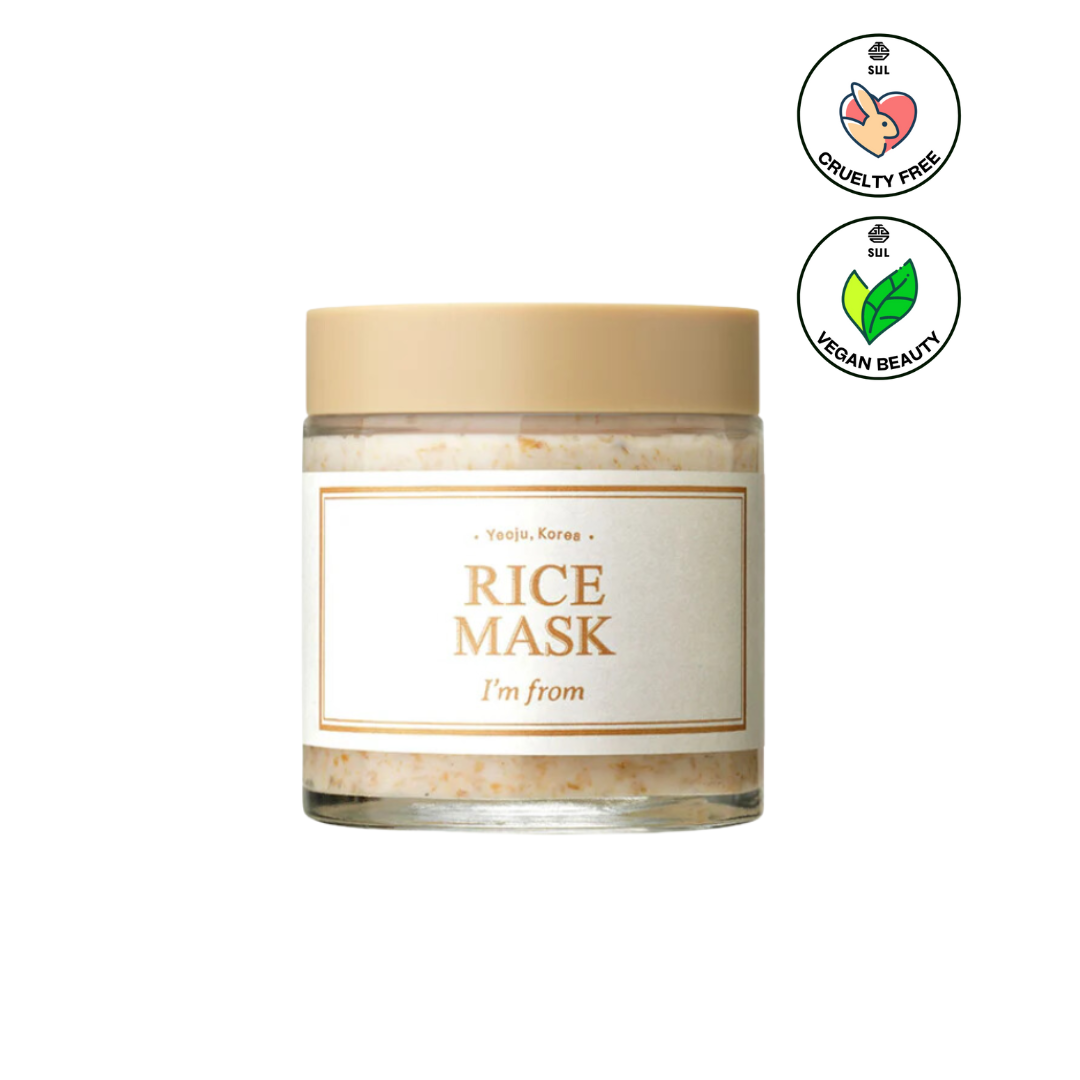 The Rice Mask by I'm From is a wash-off mask enriched with 4.1% organic Yeoju Korean Rice Extract, packed with vitamins B1, B2, and minerals that gently exfoliate, nourish, and brighten the skin.