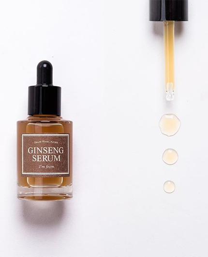 The Ginseng Serum by I'm From contains 7.98% top quality 6-year-old red ginseng and Panax ginseng seed oil from South Korea. It improves skin elasticity and firmness by stimulating collagen production and skin cell regeneration. The result is rejuvenated, firm, smooth and youthful-looking skin.