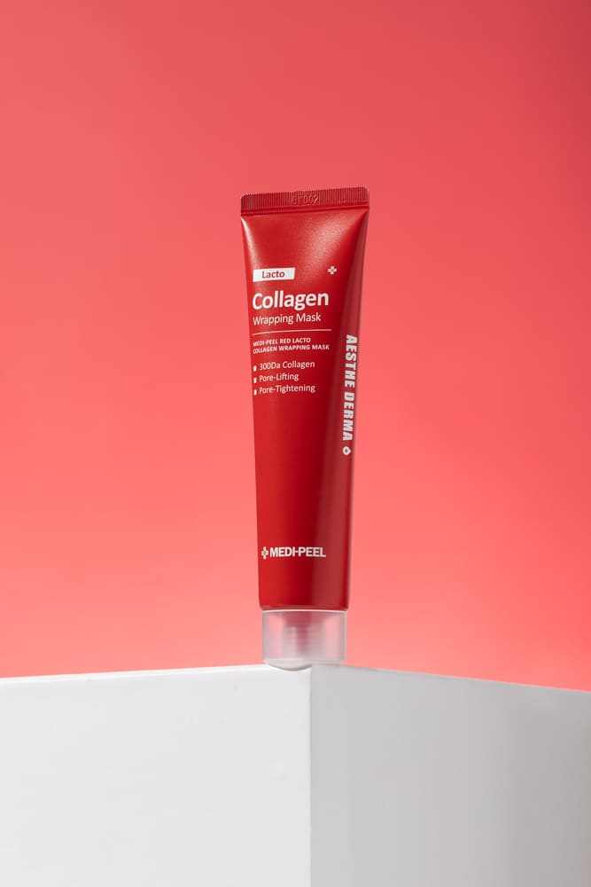 The Red Lacto Collagen Wrapping Mask by Medi-Peel is the viral 'skin-shedding' and 'peel off' mask that is designed to lift vertical pores and enhance skin's elasticity, radiance, and moisture retention.