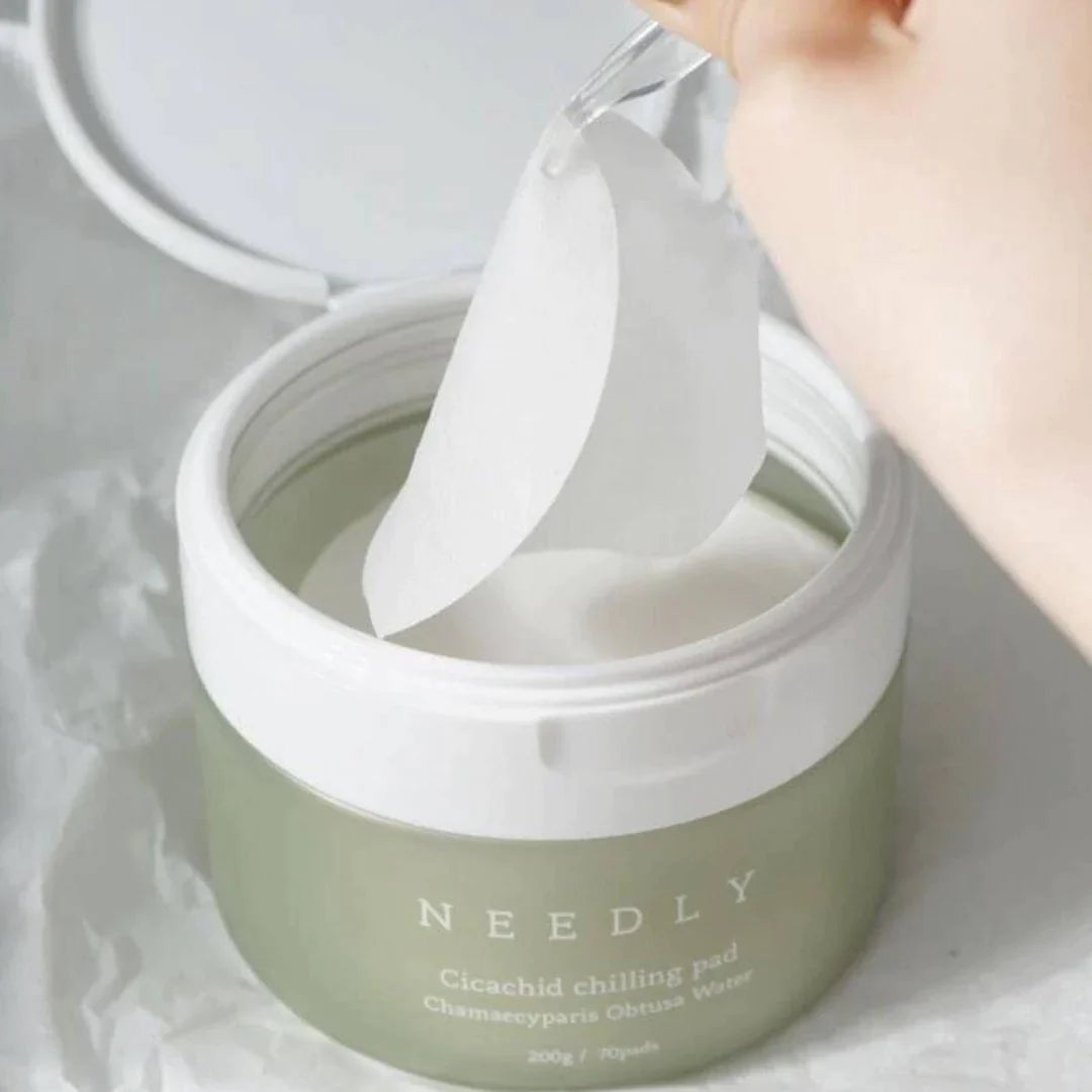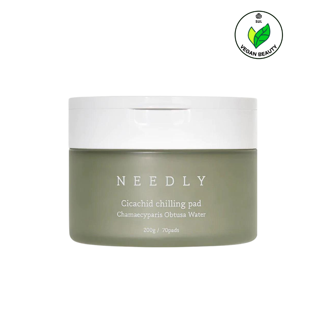 The Cicachid Chilling Pad by NEEDLY is a soothing and hydrating daily toner pad, perfect for calming skin irritated by external factors such as chemicals or heat. Enriched with 850,000ppm Cypress water and 20,000ppm Cicachid, this product is ideal for maintaining skin health and moisture. Its vegan, 100% pure cotton composition makes it suitable for all skin types, especially those with sensitive skin, ensuring gentle yet effective care.