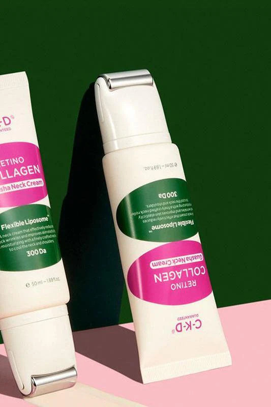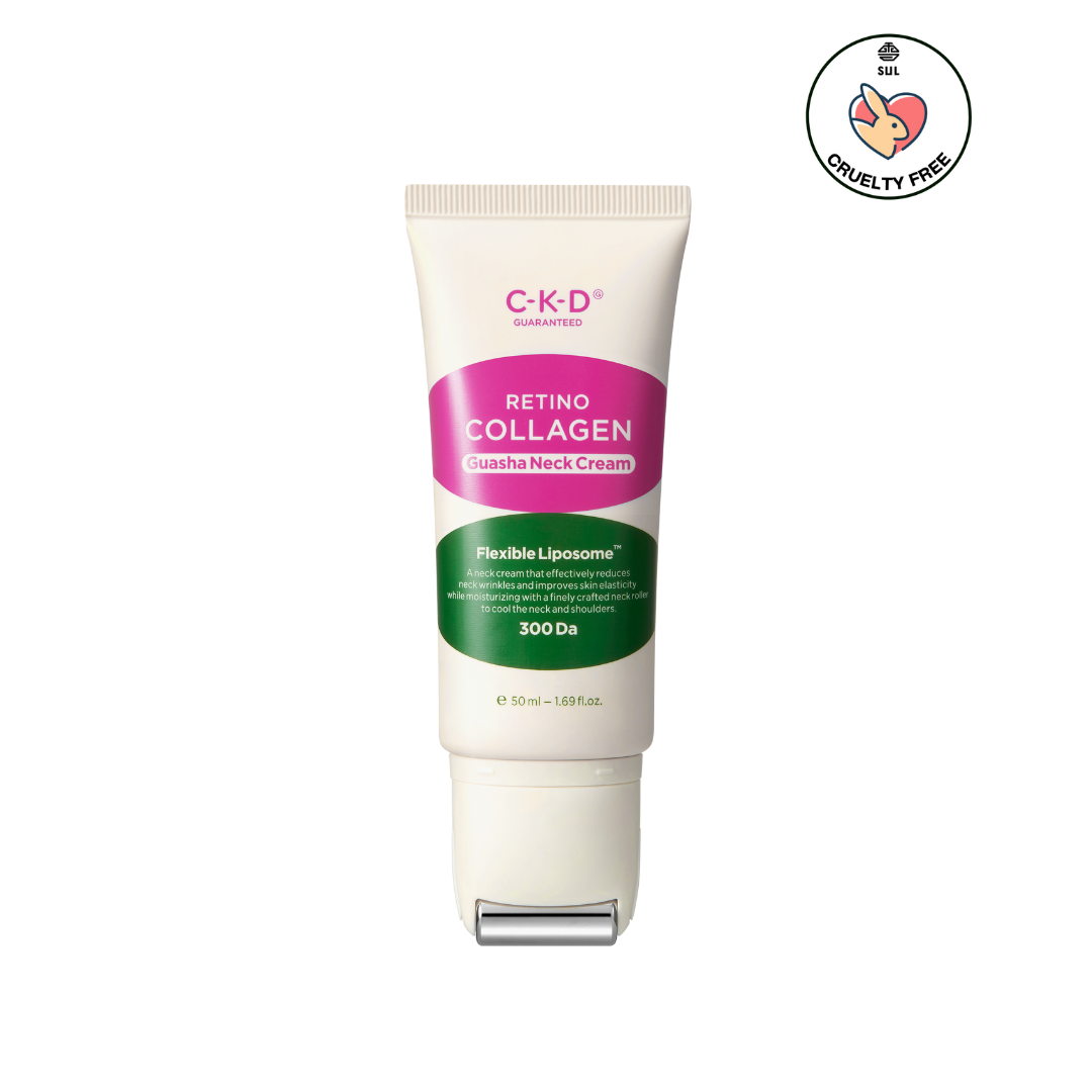 The Retino Collagen Guasha Neck Cream by CKD is a targeted anti-aging treatment designed to address neck wrinkles, sagging skin, and loss of elasticity. Formulated with low-molecular-weight collagen (300 daltons) and retinol, it penetrates deeply to enhance skin firmness and reduce fine lines. The inclusion of a stainless steel Gua Sha roller not only aids in deeper absorption of the cream but also provides a soothing massage experience, improving blood circulation and relieving tension in the neck and shoulders.