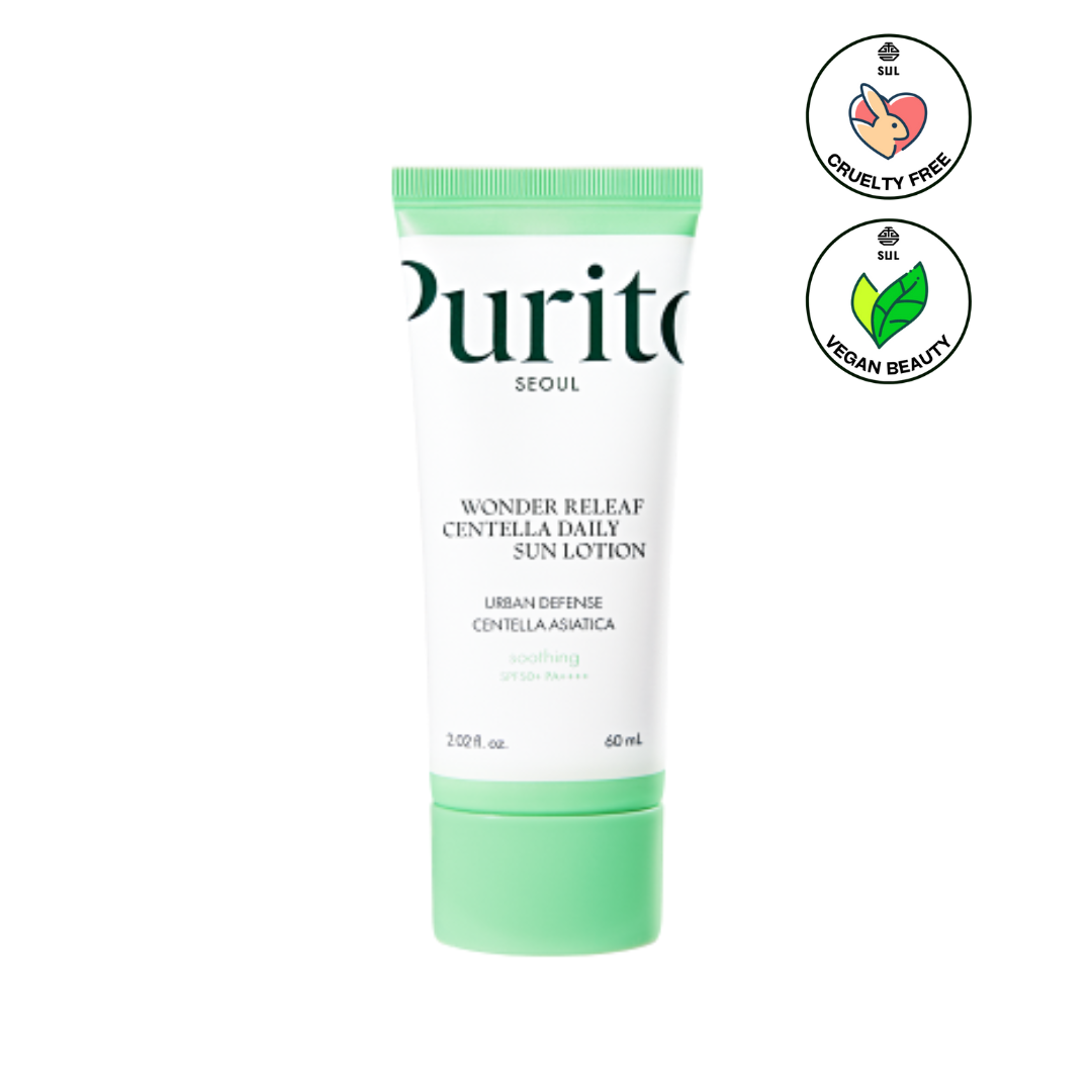 The Wonder Releaf Centella Daily Sun Lotion by Purito provides SPF 50+ PA++++ sun protection while soothing and hydrating the skin with cica extract, brown algae extract, and hyaluronic acid. This lightweight, fast-absorbing sunscreen leaves no white cast or sticky residue, ensuring a dewy, moisturized finish. Perfect for sensitive, dry, or irritation-prone skin, it offers gentle, fragrance-free protection.