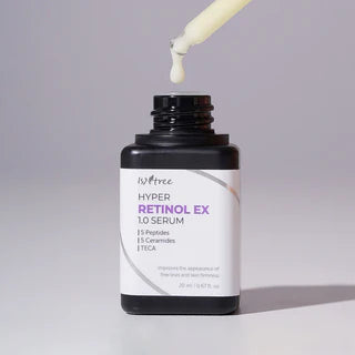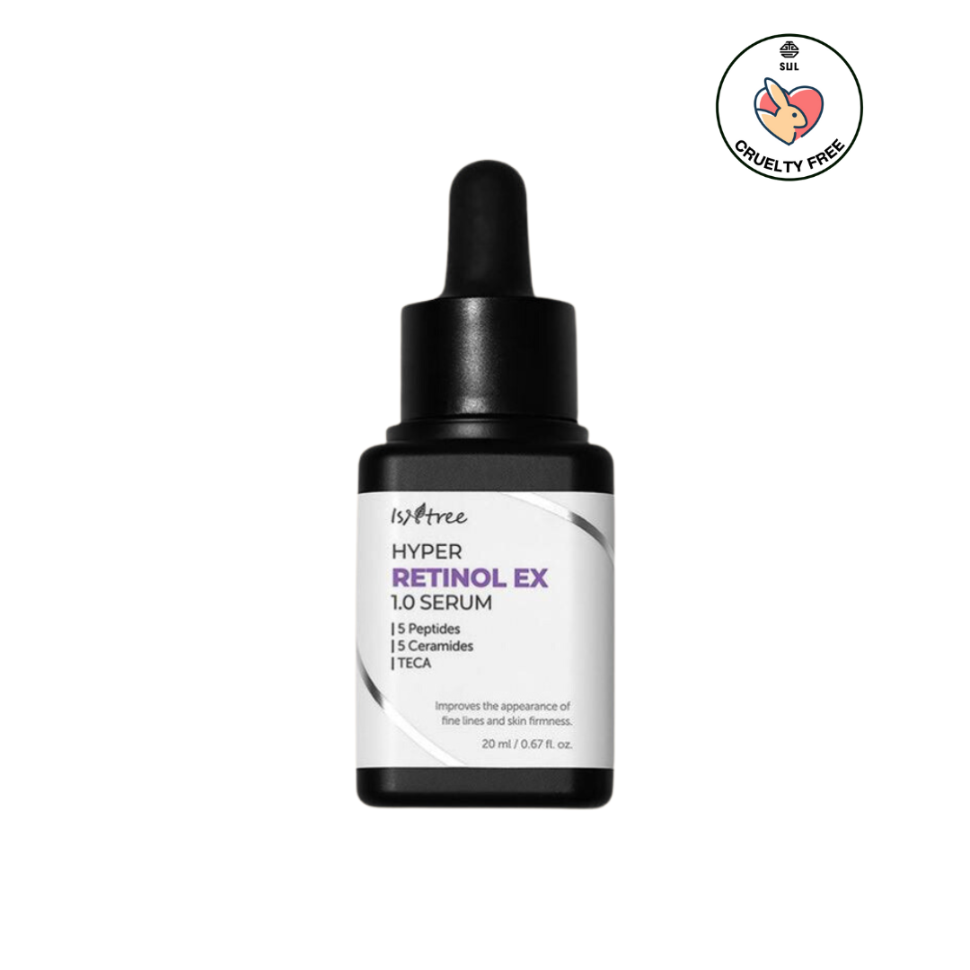 The Hyper Retinol EX 1.0 Serum by Isntree is a gentle yet powerful anti-aging serum formulated with 0.1% retinol, 0.3% retinyl palmitate, and 0.6% bakuchiol to enhance skin elasticity and reduce fine lines.