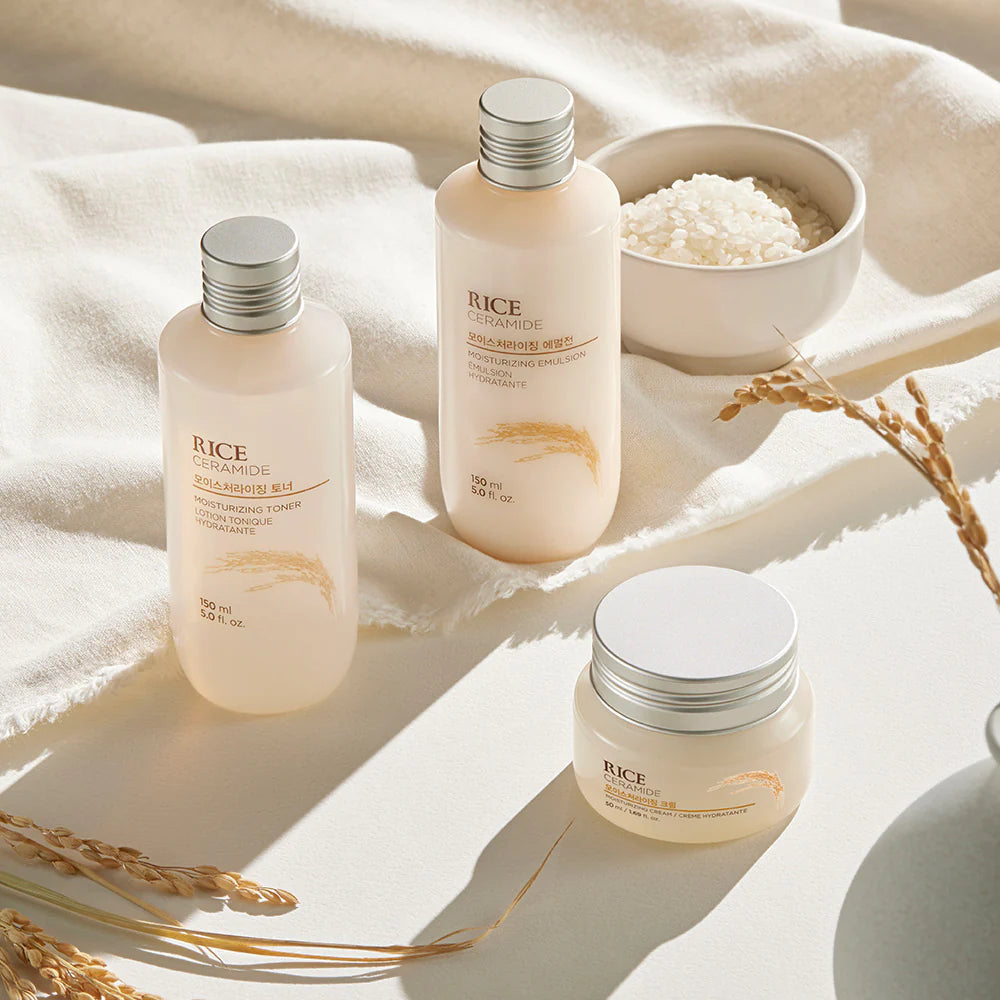 The Rice & Ceramide Moisturizing Cream by The Face Shop is a rich, deeply hydrating cream infused with rice extracts, rice bran oil, and ceramides that penetrate the skin's deepest layers to nourish and rejuvenate dry to extremely dry skin.