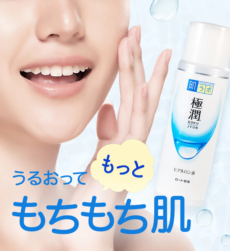 The Hada Labo Gokujyun Hyaluronic Acid Lotion by Rohto Mentholatum is formulated with three distinct types of hyaluronic acid: Hydrolyzed Hyaluronic Acid (nanoated), Acetyl Hyaluronic Acid Na (super hyaluronic acid), and Hyaluronic Acid Na, ensuring layered and deep hydration.