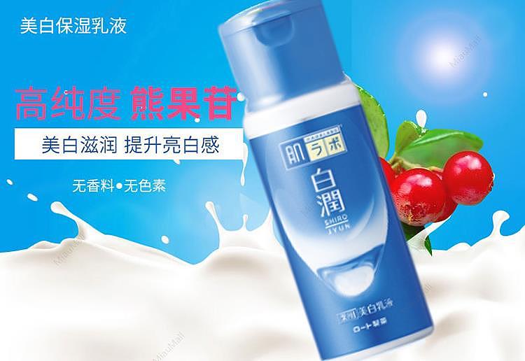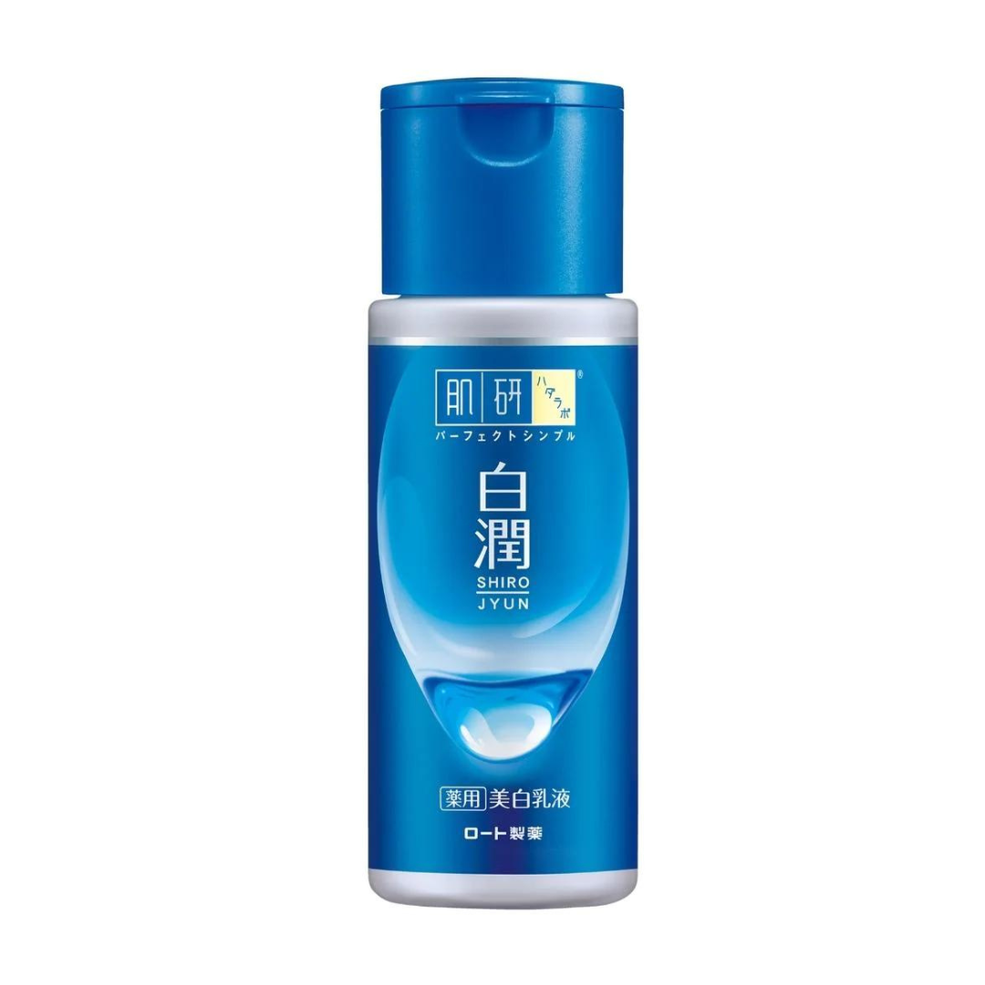 The Hada Labo Shirojyun Whitening Milk Emulsion by Rohto Mentholatum boasts a potent blend of arbutin and sodium hyaluronate, designed to inhibit melanin production and thereby reduce the appearance of freckles, dark spots, and uneven patches.