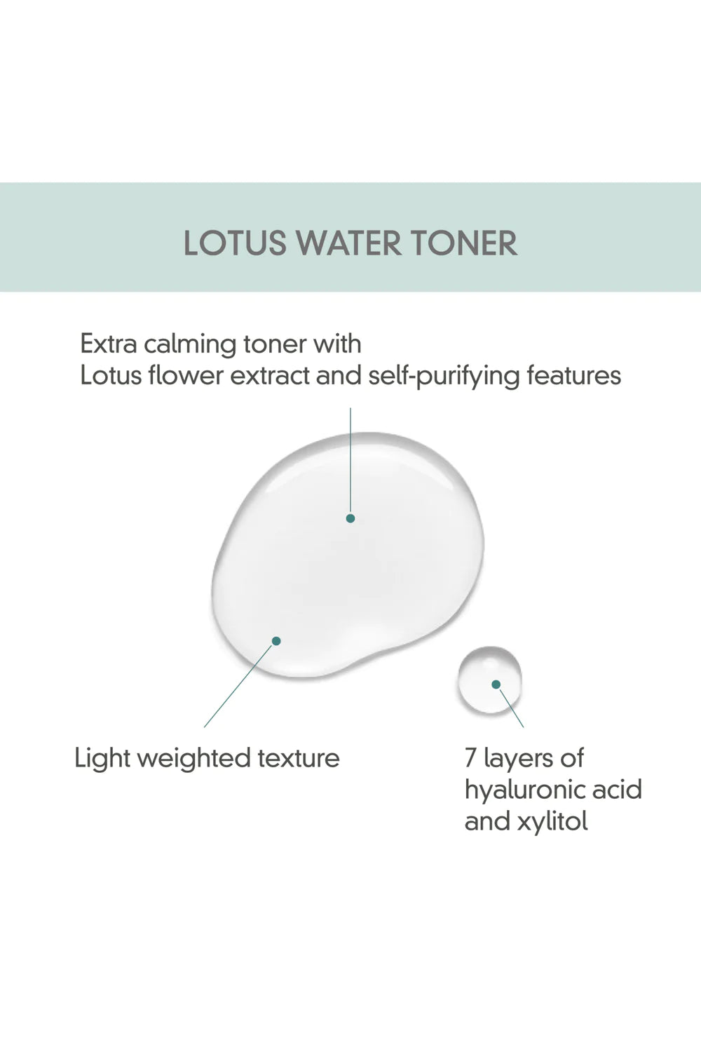 The Clean Lotus Water Calming Toner by Rovectin uses 40% Lotus flower extract and seven layers of hyaluronic acid to purify and deeply hydrate your skin.