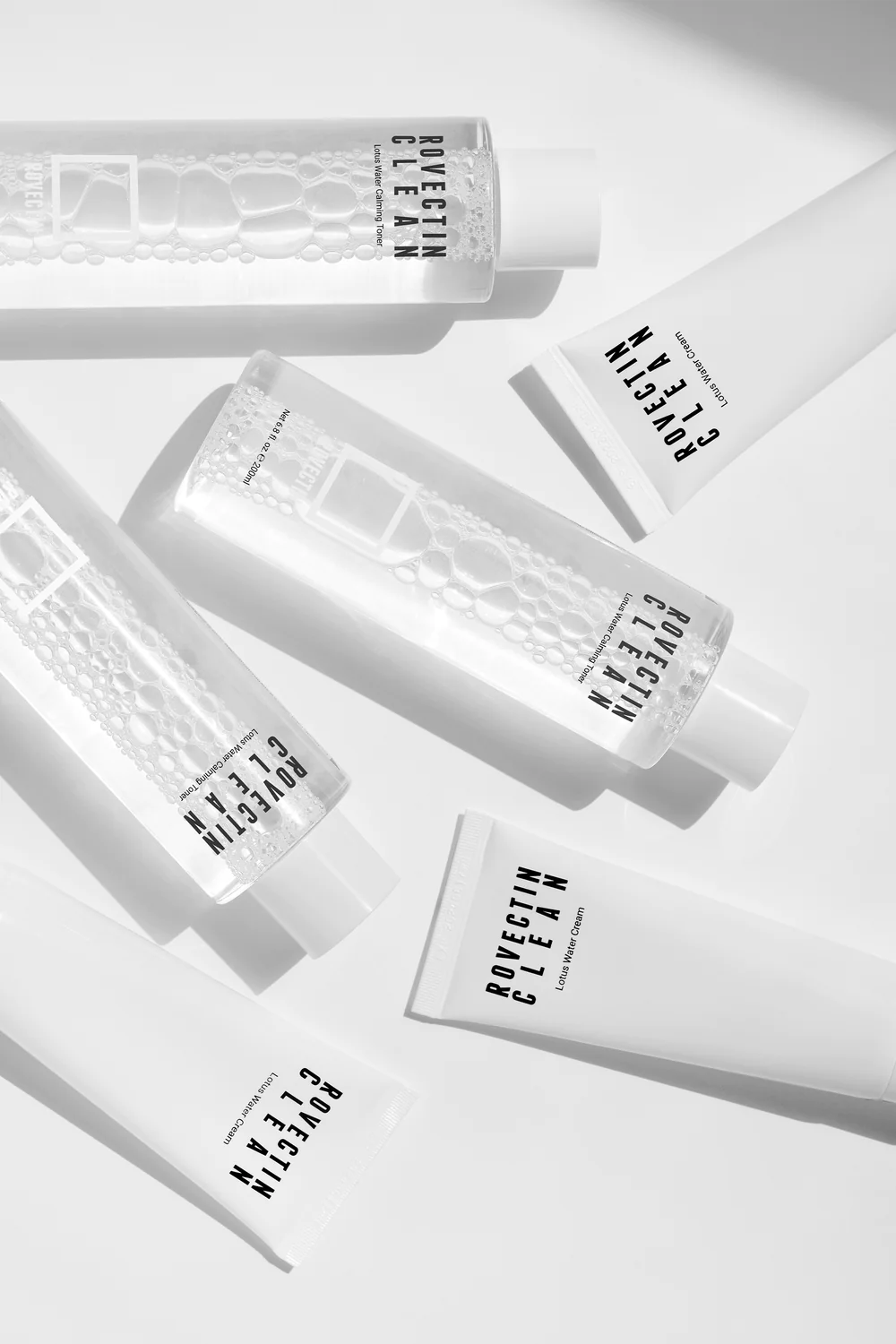 Use Rovectin Clean Lotus Water Calming Toner after cleansing to promote calm skin. Soak a cotton pad with the product and gently wipe outwards to remove excess dirt and impurities. Apply it day and/or night.