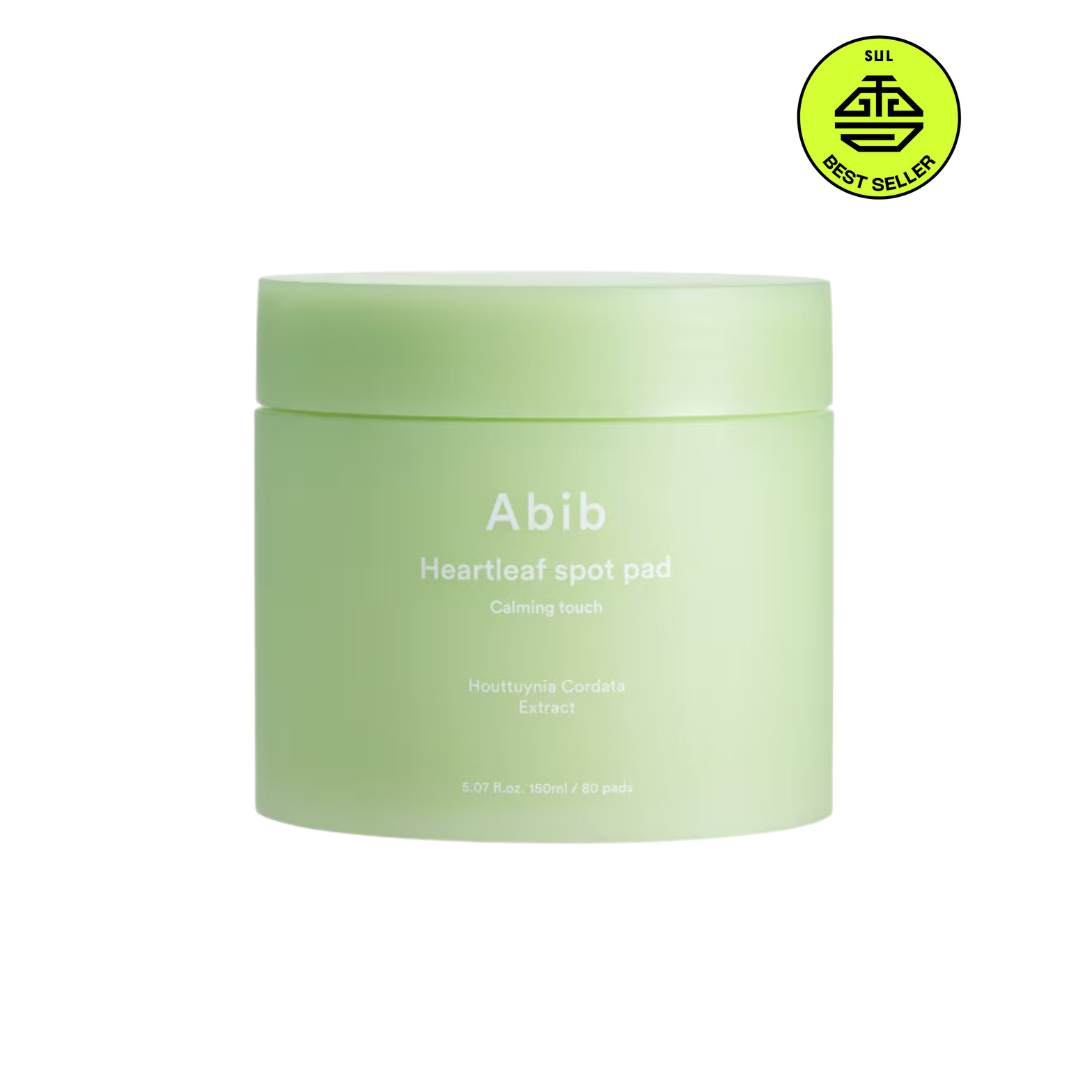 The Heartleaf Spot Pad Calming Touch by Abib contains 80 pads, each enriched with the calming essence of the brands aware winning heartleaf extract.