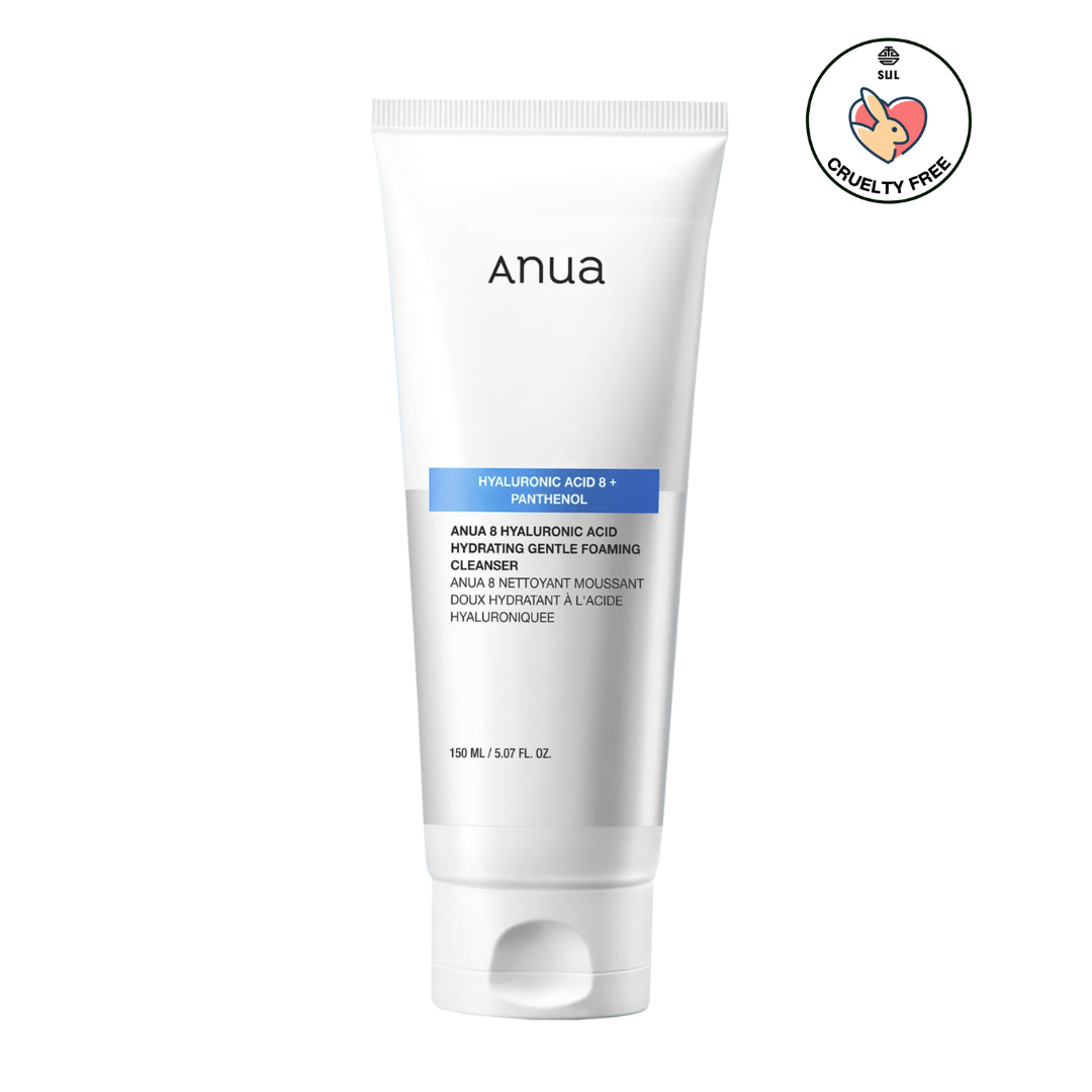 The 8 Hyaluronic Acid Hydrating Gentle Foaming Cleanser by Anua deeply cleanses without stripping moisture, thanks to its eight types of hyaluronic acid and panthenol, which hydrate and strengthen the skin barrier.