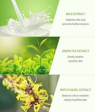 The Green Tea Milk Sheet Mask by A'pieu combines antioxidant-rich green tea with nourishing milk extract to calm and hydrate sensitive skin. Enriched with hyaluronic acid and witch hazel, it deeply moisturizes and balances the skin's moisture level, reducing redness and irritation. Ideal for rejuvenating stressed skin, this mask leaves the complexion refreshed and revitalized with every use.
