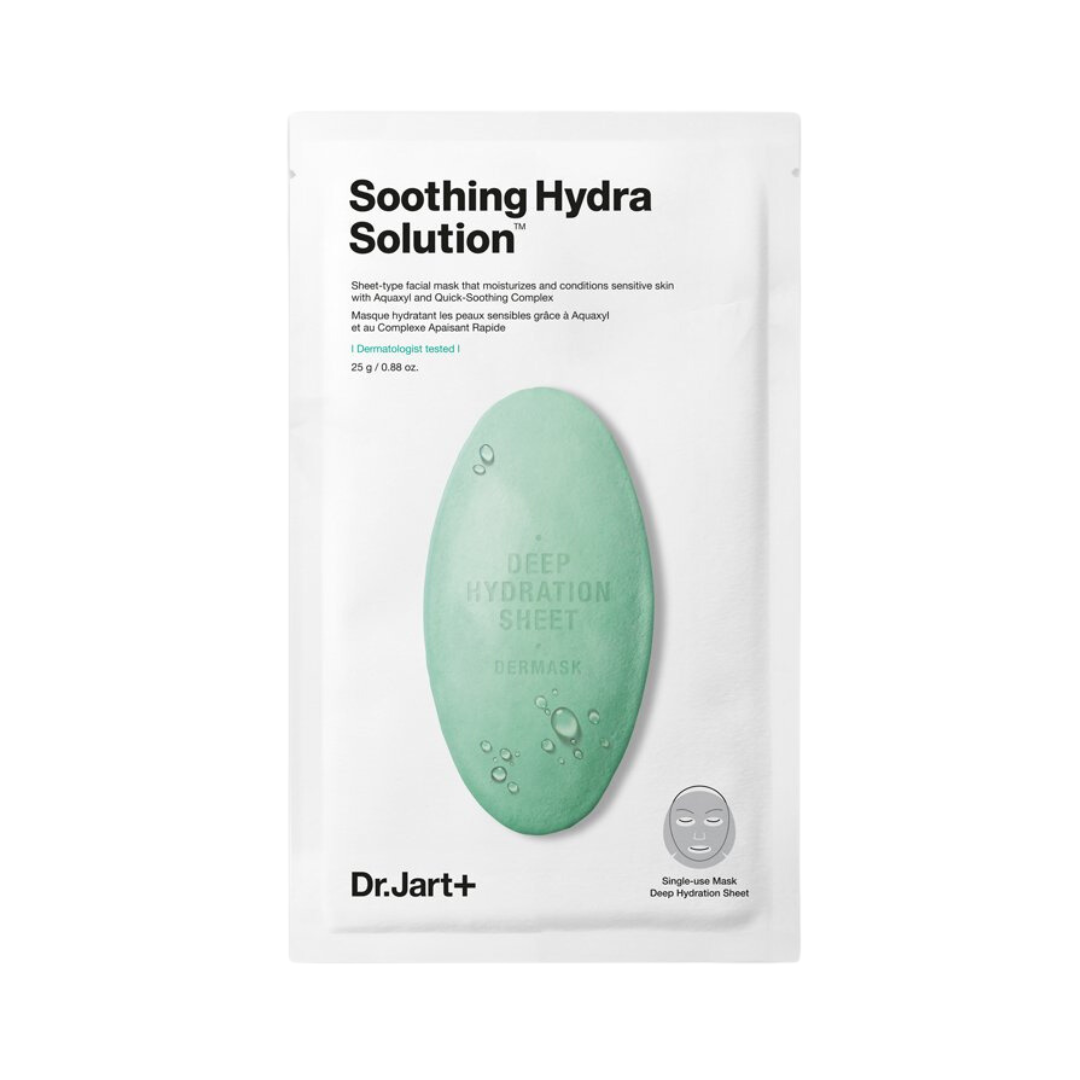 The Soothing Hydra Solution Mask by Dr. Jart+ is crafted from fine cellulose fibre to deeply hydrate and comfort sensitive, parched skin. This transparent sheet mask, enriched with aloe vera and phytoncides, delivers essential nutrients, offering immediate relief from redness, blemishes, and sunburns. Designed for optimal absorption, it ensures your skin receives the ultimate hydration boost while imparting a refreshed appearance.