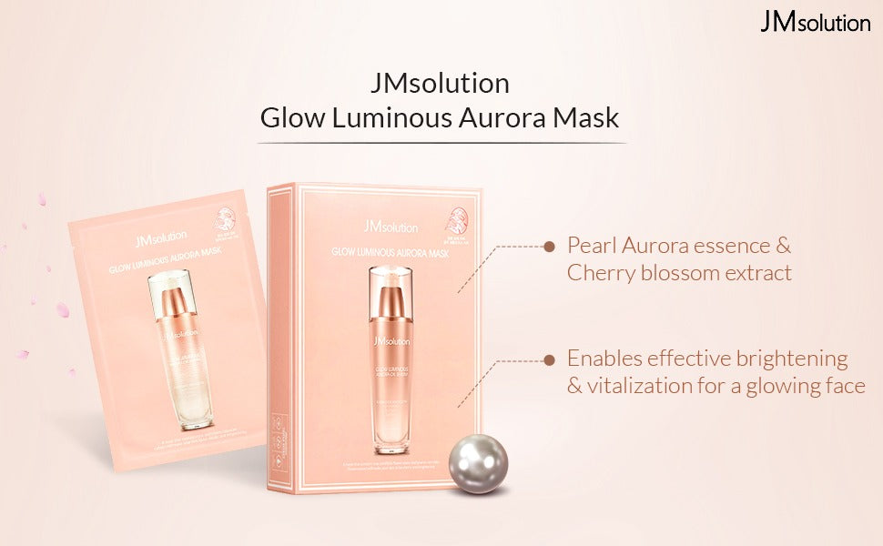 The Glow Luminous Aurora Mask by JMsolution is infused with pearl essence, Aurora gloss, and three kinds of hyaluronic acid to deeply hydrate, brighten the skin, and leaving a radiant glow Further enriched with rose water and cherry blossom extract, this ultra-fine cellulose mask sheet also helps improve the appearance of wrinkles.