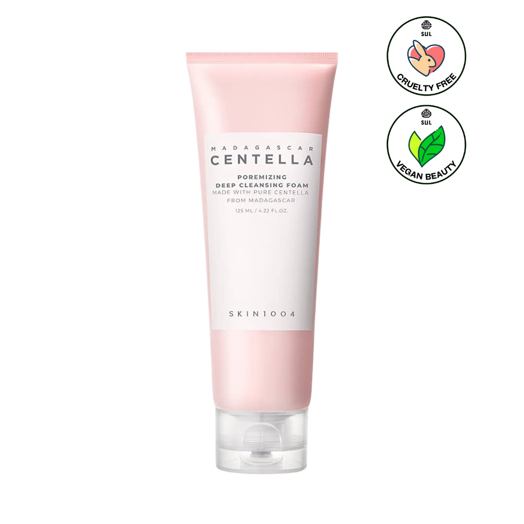 The Madagascar Centella Poremizing Deep Cleansing Foam by SKIN1004 is a rich, creamy cleanser that combines the benefits of Centella Asiatica and Himalayan pink salt to gently yet effectively cleanse and exfoliate the skin. Ideal for oily and combination skin types, it helps to calm irritated skin, detoxify, and remove impurities and dead skin cells. Its gentle formula is free from harmful chemicals, making it suitable for all skin types.