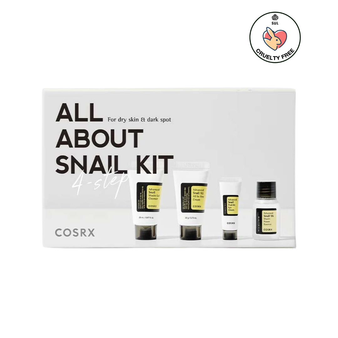 The All About Snail Trial Kit by COSRX is a curated selection of some of our favourite snail mucin-infused skincare products, designed to hydrate, repair, and rejuvenate your skin. This all-in-one kit features potent formulations, enriched with beneficial ingredients like snail secretion filtrate and hyaluronic acid, delivering an intense nourishment experience for healthier, glowing skin.