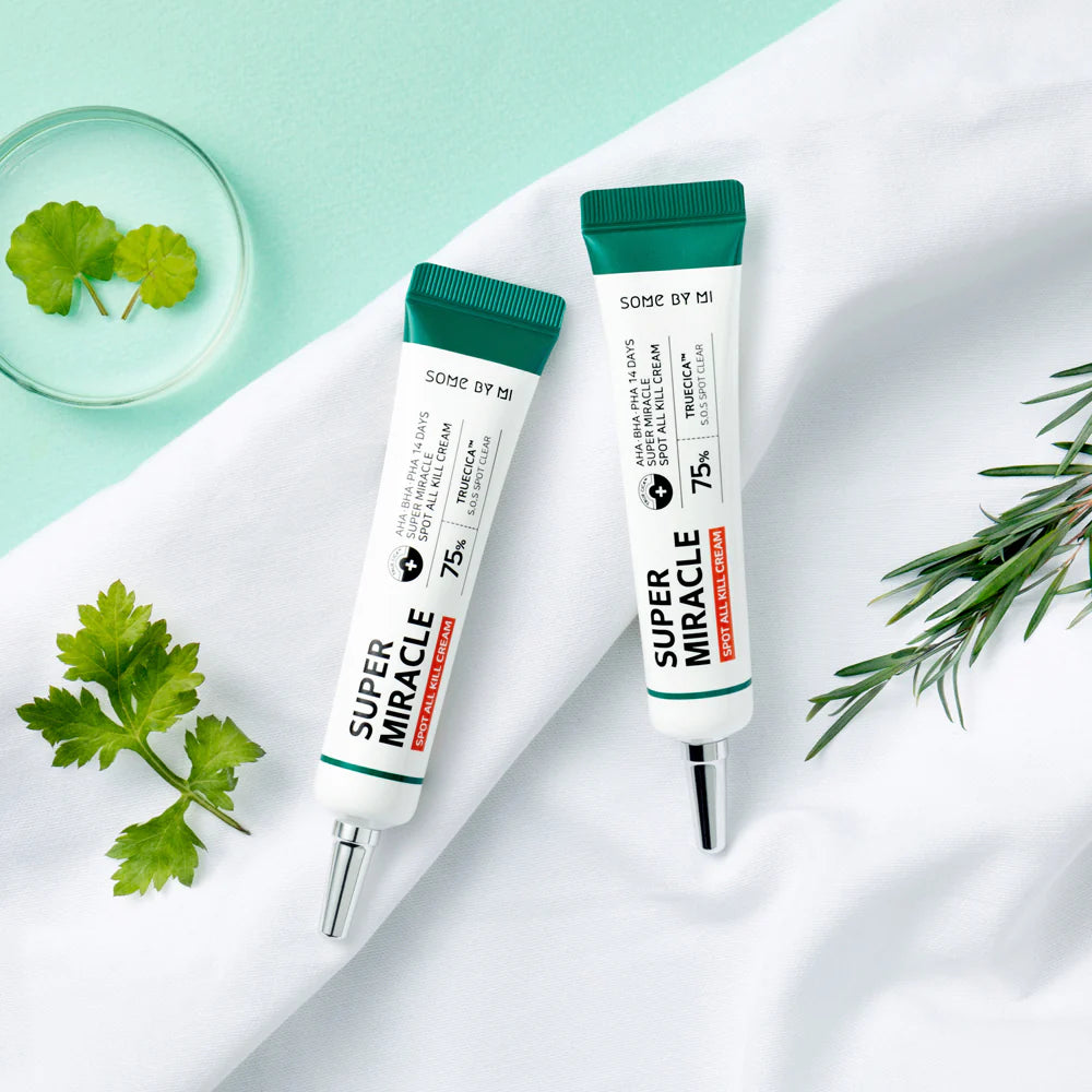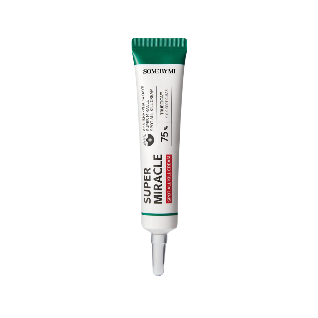 The 14 Days Super Miracle Spot All Kill Cream by Some By Mi is a potent spot treatment designed to reduce the appearance and redness of acne in just 14 days.