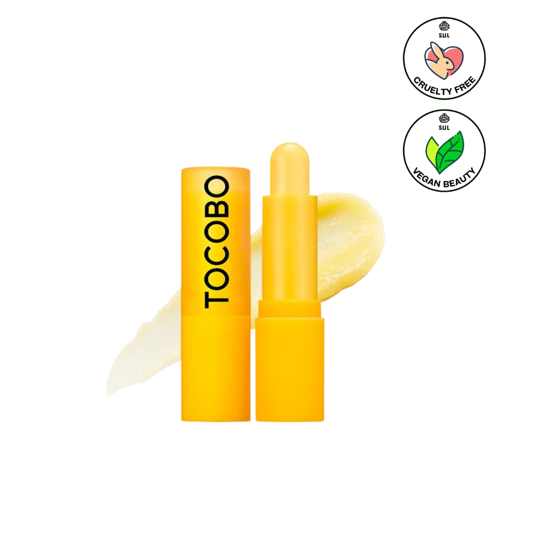 The Vitamin Nourishing Lip Balm by Tocobo is packed with Vita7 Complex and a rich blend of Jojoba, Avocado, and Meadowfoam Seed Oil.