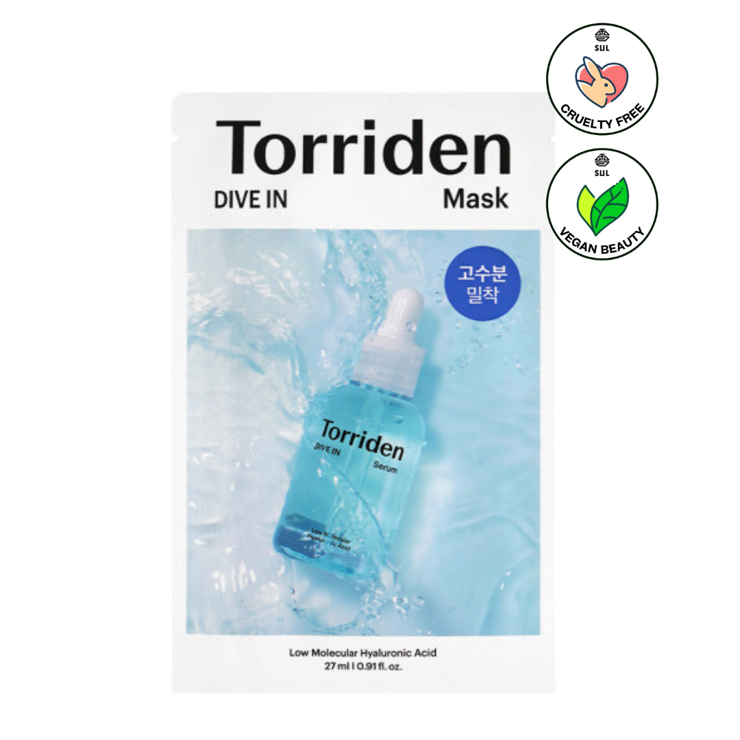 The DIVE-IN Low Molecular Hyaluronic Acid Mask by Torriden is a deeply hydrating facial treatment powered by low molecular weight hyaluronic acid, ensuring superior absorption and moisture retention.