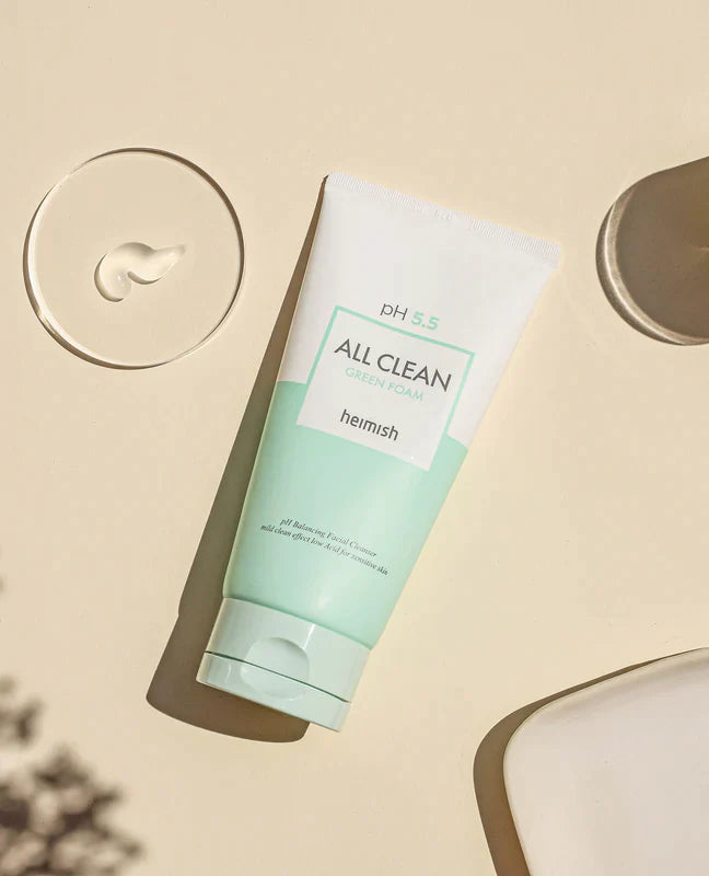 The All Clean Green Foam by Heimish is a gentle foaming cleanser that has a pH value of 5.5, matching the natural acidity of human skin. Formulated with soapbark tree, Centella and witch hazel extracts to thoroughly cleanse skin of excess oil and dirt, this cleanser is suitable for sensitive skin and helps with clearing blemishes and reducing acne.