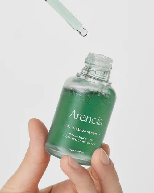 The Holy Hyssop Serum 12 by Arencia is a brightening and revitalizing serum designed to reduce hyperpigmentation, dark spots, and improve skin texture. Formulated with green hyssop extract from France, 12% Vita ACE Complex, and a blend of niacinamide, vitamin B, and E, it deeply nourishes, hydrates, and enhances skin radiance. Ideal for those looking to achieve a glowing, even-toned, and smooth complexion with a lightweight, fast-absorbing formula.