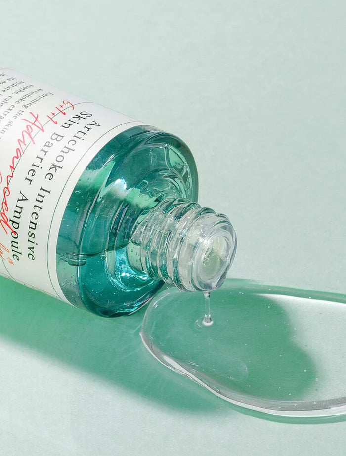 The Artichoke Intensive Skin Barrier Ampoule by AXIS-Y is a nourishing serum designed to repair and strengthen acne-prone skin, delivering antioxidants and hydration to soothe redness and prevent future breakouts.