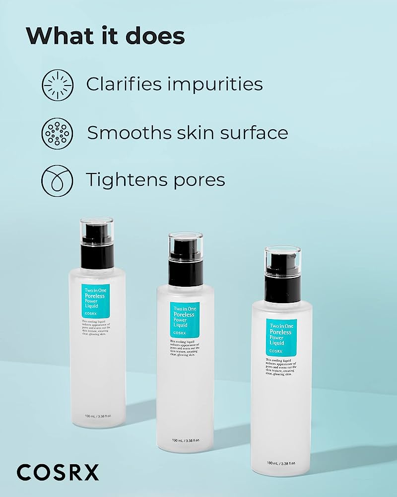 The Two in One Poreless Power Liquid by COSRX is an alcohol-free toner that cleans and tightens pores. Willow bark water is added to this lightweight formula to combat symptoms of acne, while hyaluronic acid offers deep, long-lasting moisture that effectively tightens enlarged pores and controls sebum production. With its potent, yet gentle formulation, this power liquid leaves your skin feeling smooth, refreshed, and shine-free.