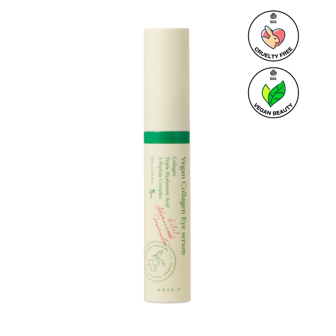 The Vegan Collagen Eye Serum by AXIS-Y  is your ultimate solution for addressing wrinkles, puffiness, and dark circles around the eyes. With a nourishing formula featuring Vegan Collagen, 5-Peptide Complex, and Triple Hyaluronic Acid, it targets multiple concerns to improve skin elasticity, hydration, and tone. Enhanced with Vitamin C-rich Fruit Extracts, it brightens the delicate eye area, leaving it rejuvenated and refreshed for a more youthful appearance.