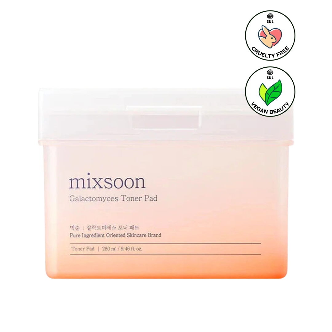 The Galactomyces Toner Pad by Mixsoon is a large-sized hydrating toner pad infused with Galactomyces to brighten and improve uneven skin tone.
