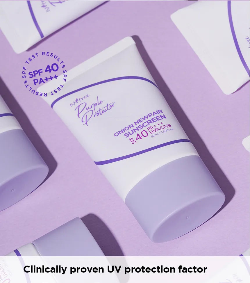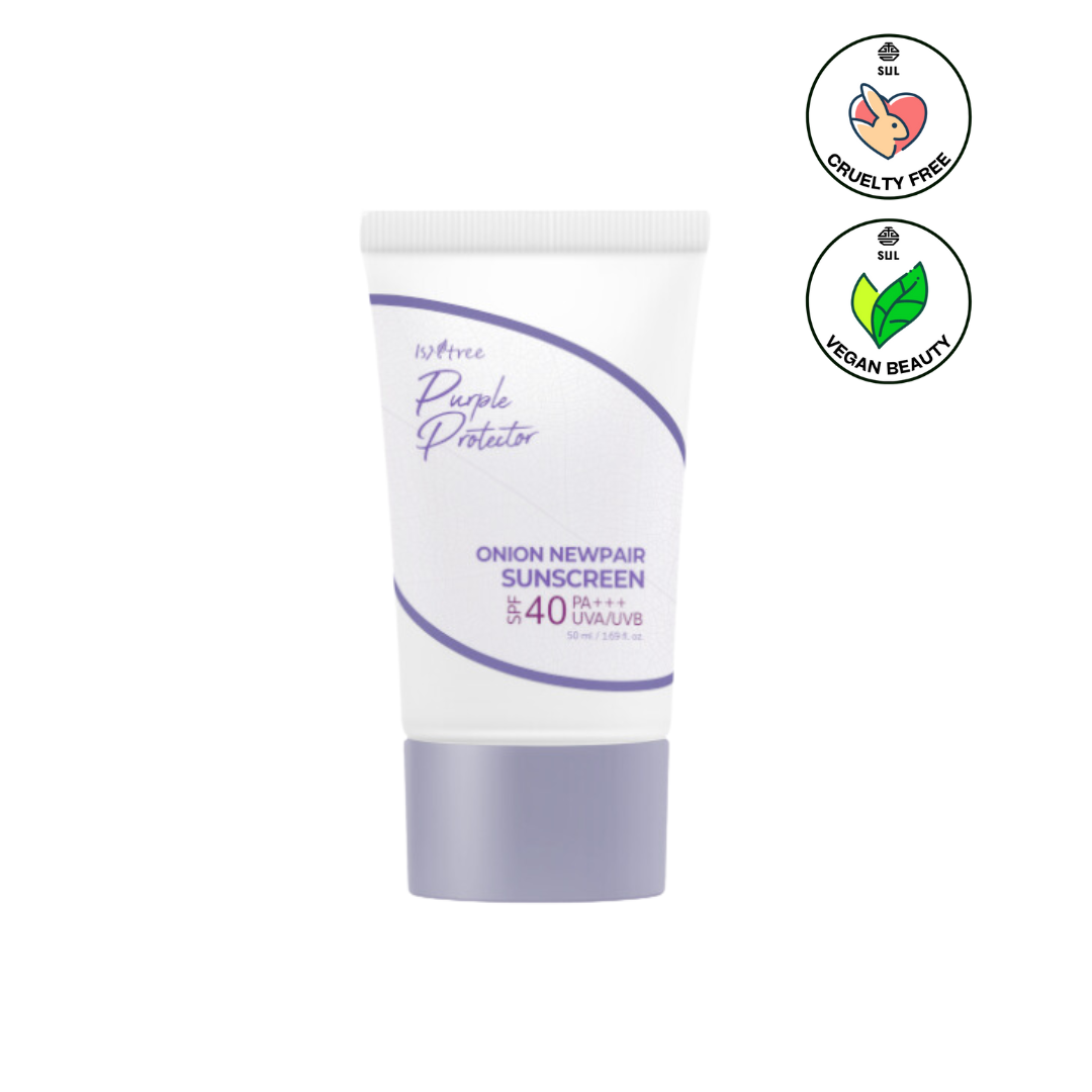 The Onion Newpair Sunscreen by Isntree is most unique sunscreen in the market right now - with an innovative SPF40 PA+++ formula incorporating 5% red onion extract, known for improving blemish-prone skin, and Multi Vita Complex to enhance skin radiance. It is uniquely tinted to correct and brighten yellow undertones, while hydrating ingredients like allantoin and heartleaf extract soothe and moisturize. This lightweight sunscreen also acts as a primer with Glycoproteins, smoothing the skin's surface for a glowing, even-toned complexion.