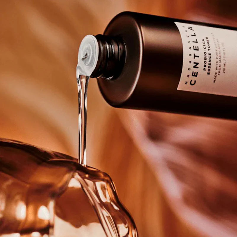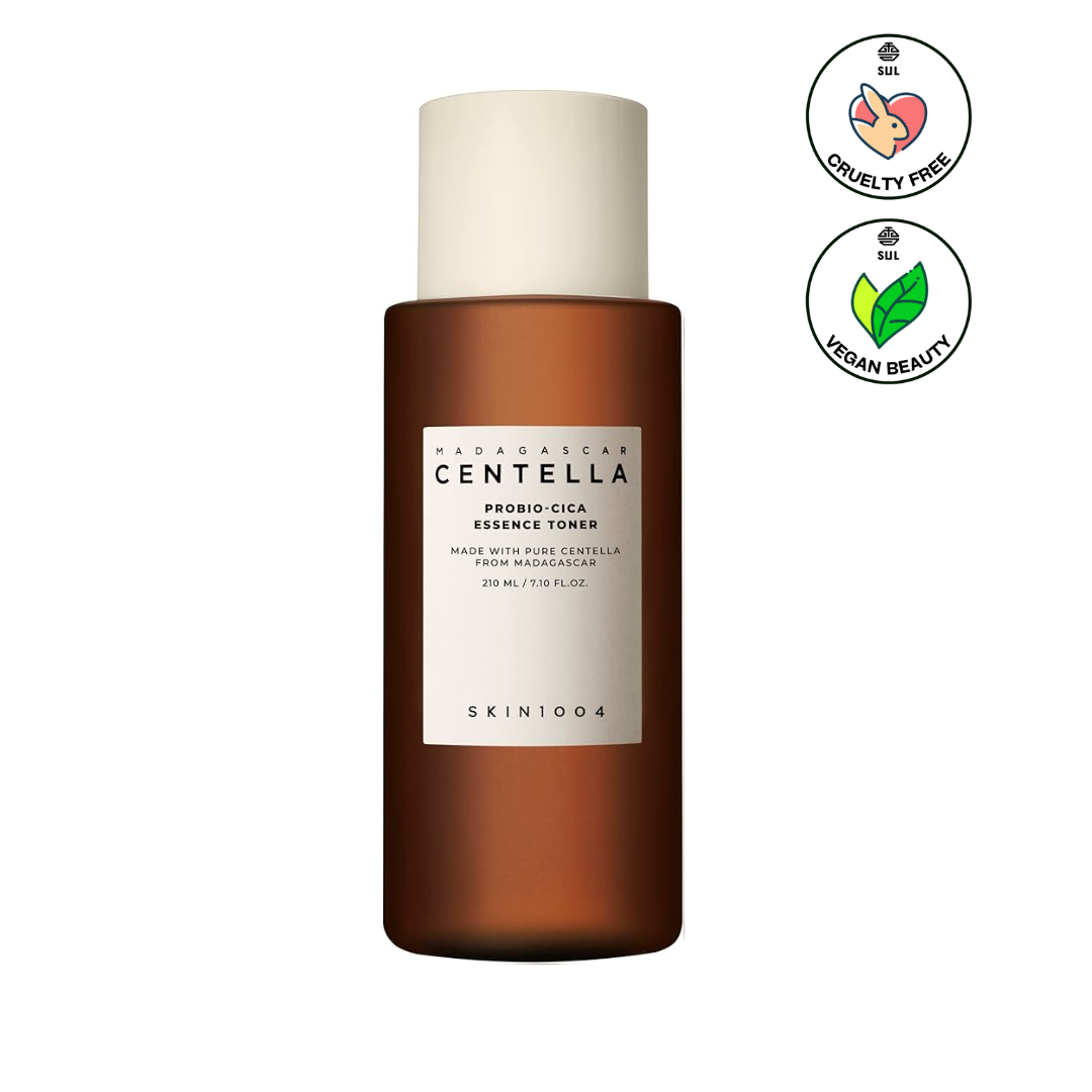The Madagascar Centella Probio-Cica Essence Toner by SKIN1004 is a lightweight, hydrating toner that soothes sensitive skin with the calming benefits of Centella Asiatica and probiotics.