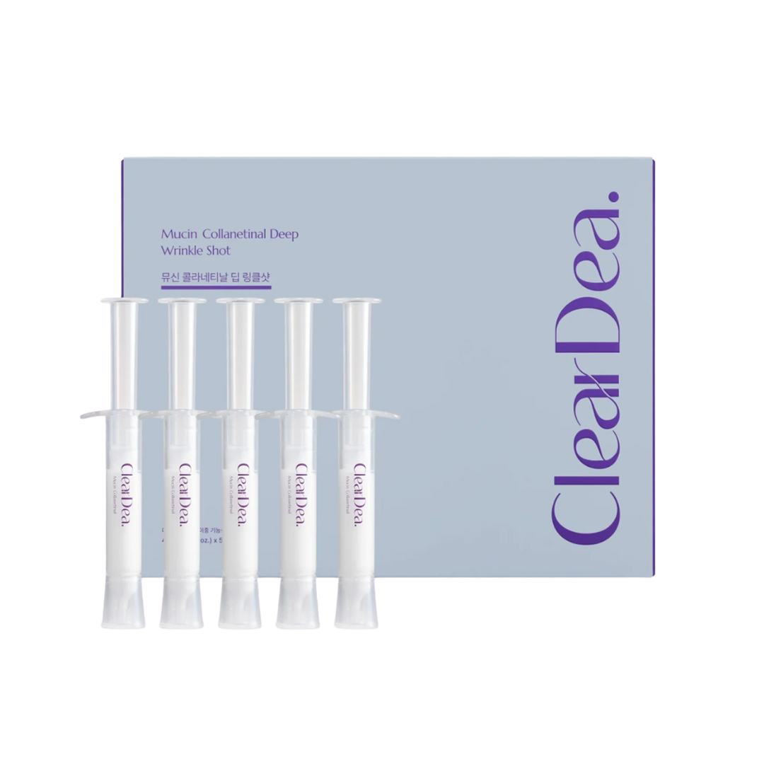 The Collantinal Deep Wrinkle Shot by ClearDea is a powerful early anti-aging serum designed to visibly firm and smooth fine lines. Formulated with Collanetinal™—a unique blend of collagen and retinal delivered via ultra-fine spicules sourced from Russia’s Volga River—it deeply penetrates to boost skin cell regeneration and improve elasticity. Lightweight and fast-absorbing, it’s perfect for revitalising tired skin and restoring a youthful glow.