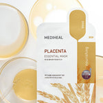 The Placenta Essential Mask by Mediheal is a rejuvenating sheet mask that helps firm, lift, and deeply hydrate the skin using plant-derived placenta extracts from rye, soybean, and edelweiss. Ideal for addressing fine lines, sagging skin, and loss of elasticity, it leaves your complexion plump, radiant, and youthful. Made with a vegan, bamboo-derived sheet, it's gentle and suitable for all skin types—including sensitive.