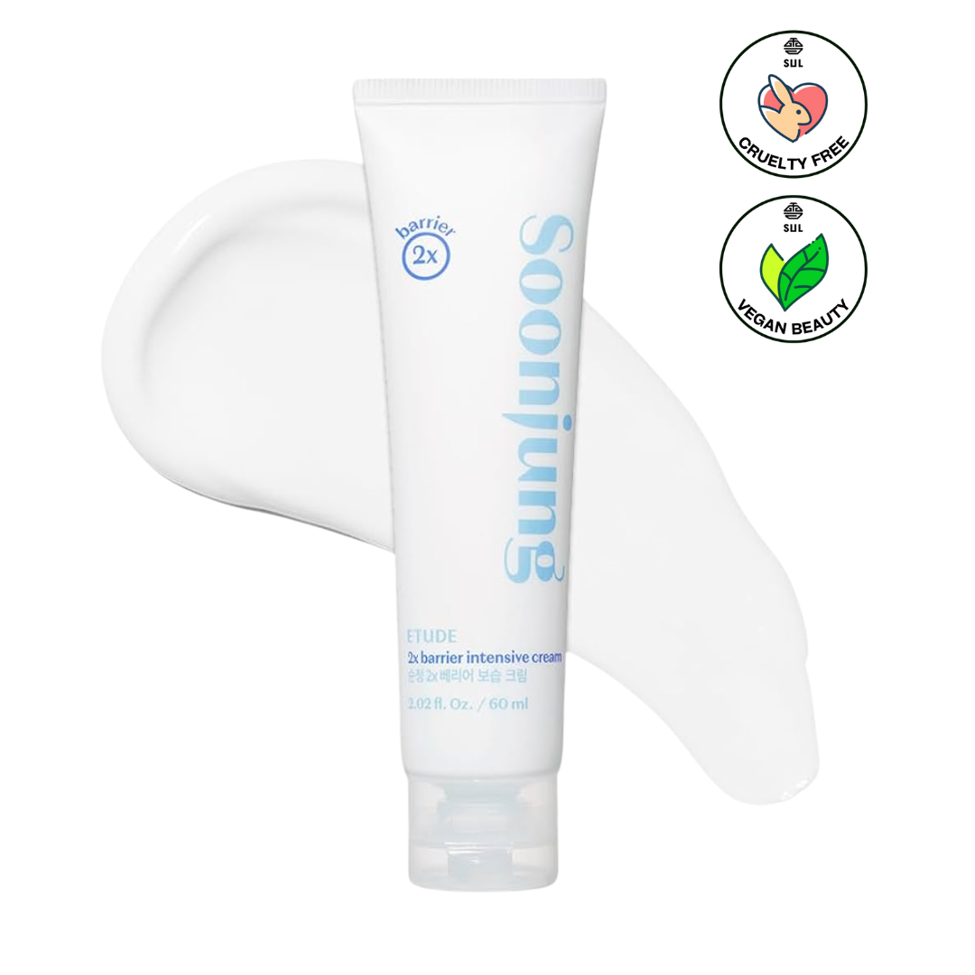 The Soon Jung 2x Barrier Intensive Cream by Etude House is a soothing, moisturizing cream designed to reinforce your skin's barrier.