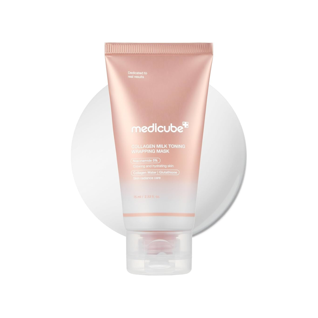 Medicube's Collagen Milk Toning Wrapping Mask is a luxurious wash-off mask designed to deliver instant glow, firmness, and deep nourishment in one treatment. As it dries, it forms a soft “wrapping” layer that locks in moisture while refining skin texture for a visibly smoother, more luminous complexion.