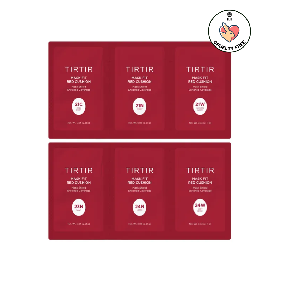 The Mask Fit Red Cushion 6 Shade Trial Kit by TIRTIR is designed to help match you to your perfect shade amongst the 30 shades of best-selling Mask Fit collection. This Trial Kit offers 1g samples for each shade from light to deep.